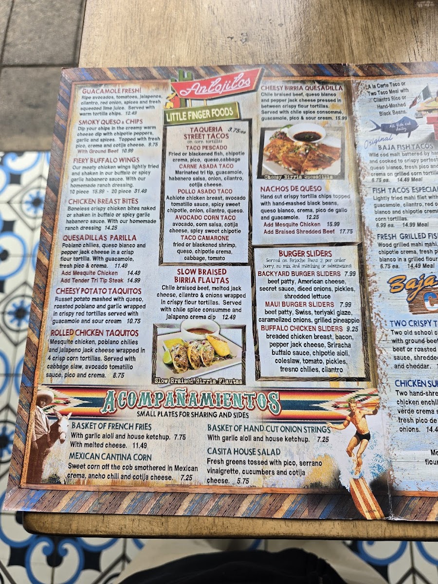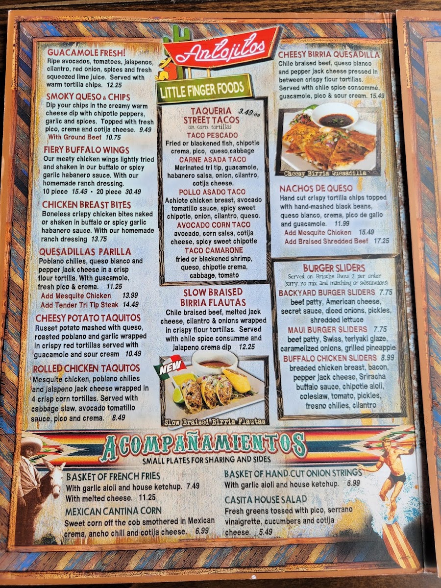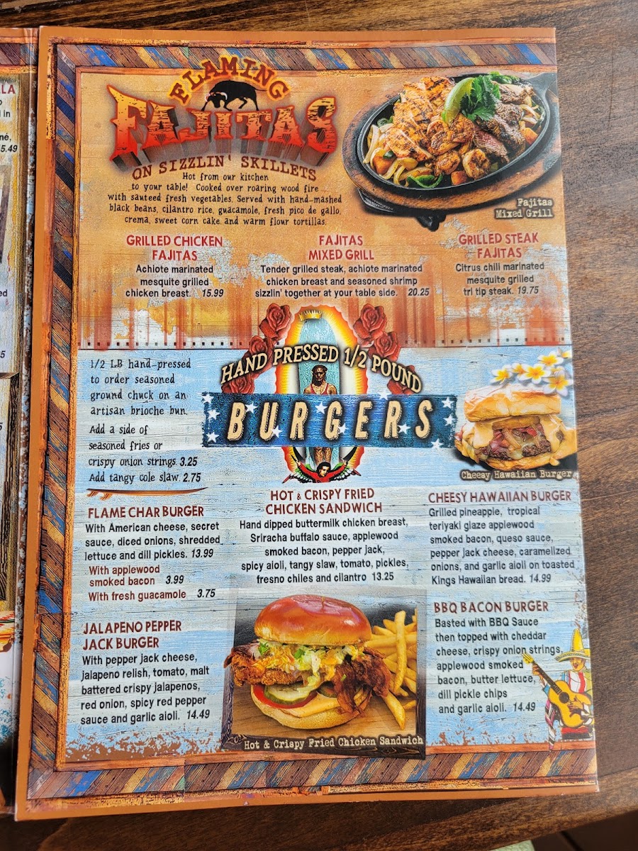 Wood grilled mahi or malt battered cod, pepper jack cheese, cilantro rice, cabbage slaw, garlic aioli, spicy sweet chipotle sauce, pico and fresh avocado