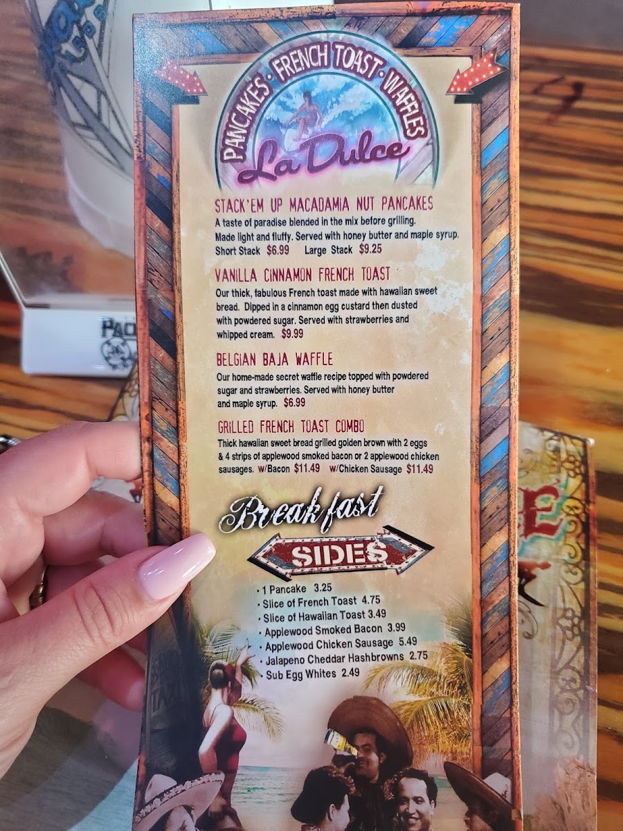 Crispy applewood smoked bacon or crumbled chorizo, butter browned tater tots, queso blanco and green onion. with cilantro rice and cilantro rice on the side. Available all day!